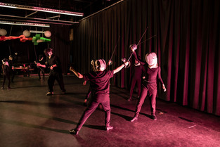 Intermediate Theatre students (ages 8-12) invite the audience to observe their training process. Young actors will perform acting warm-ups, ensemble movement and speech exercises and scenes, juggling training with scarves, stage fencing exercises and fight scenes.